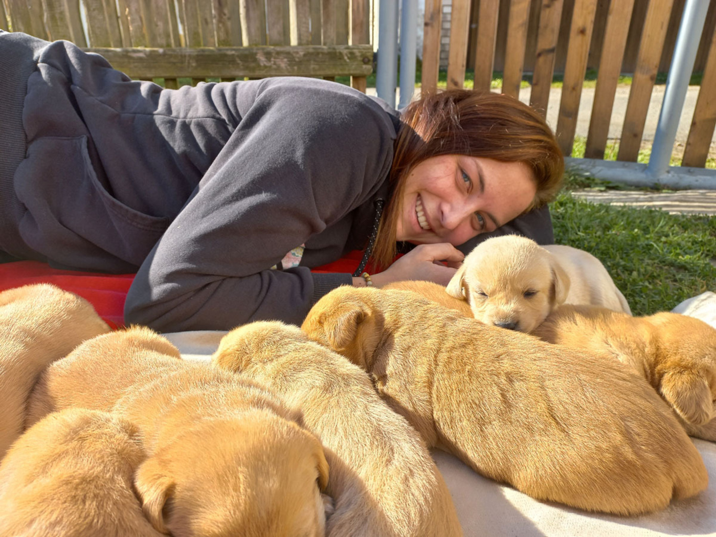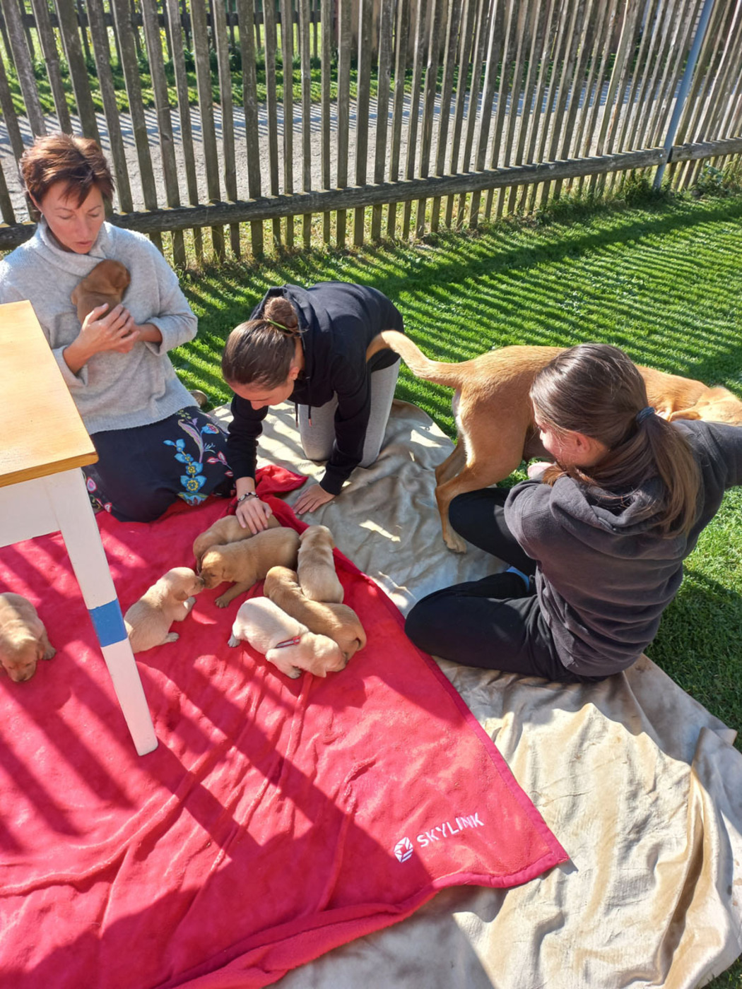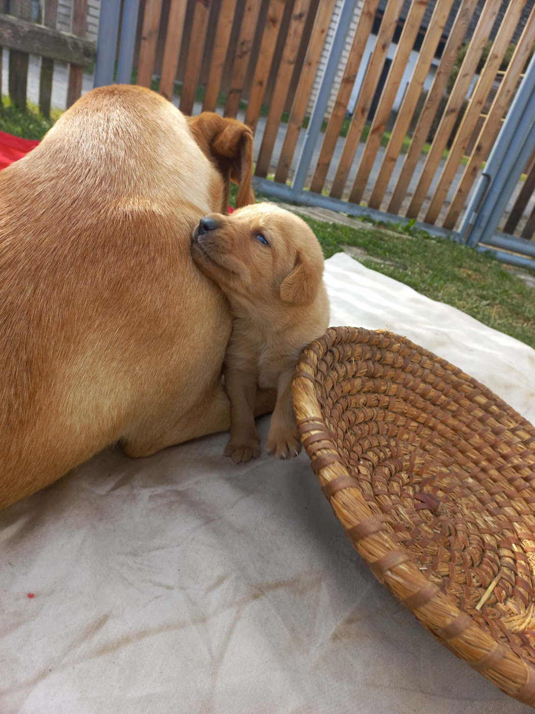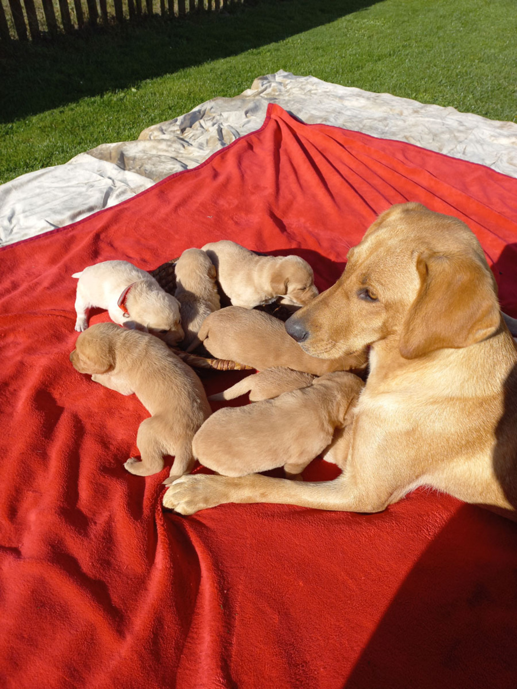Tak skoro na den před rokem jsem se stala poprvé mámou. Přišlo to jako blesk. Na jaře jsem slavila své první narozeniny a na podzim už jsem byla máma. Šlo to strašně rychle. Někdy koncem července mi začalo být nějak divně. Furt jsem byla nervózní, hrabala díry nevím proč, tahala páníčka boty a schovávala je, chvilku mi bylo horko, pak zase zima… Pak, kde se vzali, tu se vzali, začali sem běhat úplně cizí psi. Jeden malý, druhý velký, třetí rezavý, a čtvrtý, já nevím, takový divný… A furt mi čuchali k zadku. Kousala jsem je, páníček házel klacky a řval. Mezi těmi všemi však byl jeden, opravdu fešák. Také mého plemene, jen si jeho rodina prošla asi více zeměmi, než moje. Ale o to byl zdatnější. Basty se jmenuje. A jaký bojovník ! Sedřel kůži z těch zbylých moulů a dobyl si první místo. Jenže tu byla zeď. Můj a jeho pán. Ne a ne nás nechat o samotě. Přitom jsem cítila že bych moc chtěla. Ale to ne. Jak jsem byla smutná, když si mého milého odváděli na řetězu. A jak zase veselá, když se utrhl a v noci zase přišel. Jenže já byla zavřená doma. A tak to šlo stála dokola, až … No, oklamejte přírodu a ženskou zvlášť.. Stačilo 20 ? 30 ? vteřin. Chvilka nepozornosti mého pána a brutální síla mého Bastyho, který proboural v mžiku plot. Ty dvě věci se osudově sečetly a vše ostatní bylo už dílem okamžiku. Nemusím mluvit dál. Za pár týdnů na to, 19/9/21 v šest ráno jsem porodila 8 krásných dětiček. 7 holek, 1 kluka. Vše šlo jak na drátku. Páníček spal a vzbudilo ho až kňučení. Rodila jsem v boudě, sice jsem měla připravené lůžko ve stodole. Pro tu chvíli mi však bylo dobře v boudě. A dál ? Radosti starosti, zmatky a spousta jiných lidí. Ani jsem netušila, že je tolik lidí vůbec na světě. Pod dozorem páníčka si furt prohlíželi moje štěňata, chodila sem spousta dětí i dospělých a stále jen hra a blbnutí. Někdy, to je také třeba, jsem musela ta neposedná štěňata trochu zkrotit, dostala svůj díl a že u toho bylo křiku. No a najednou bylo o jednoho méně, pak druhá holka byla pryč a třetí…. Páníček byl v klidu, tedy se nic nedělo. A pak už mi zůstala jen očko a malinká. Zvlášť malinkou jsem měla ráda. No, obě si našly svou cestu do světa a mají se dobře u svých nových pánů. A všem je teď moc dobře, jak ještě budu vyprávět.