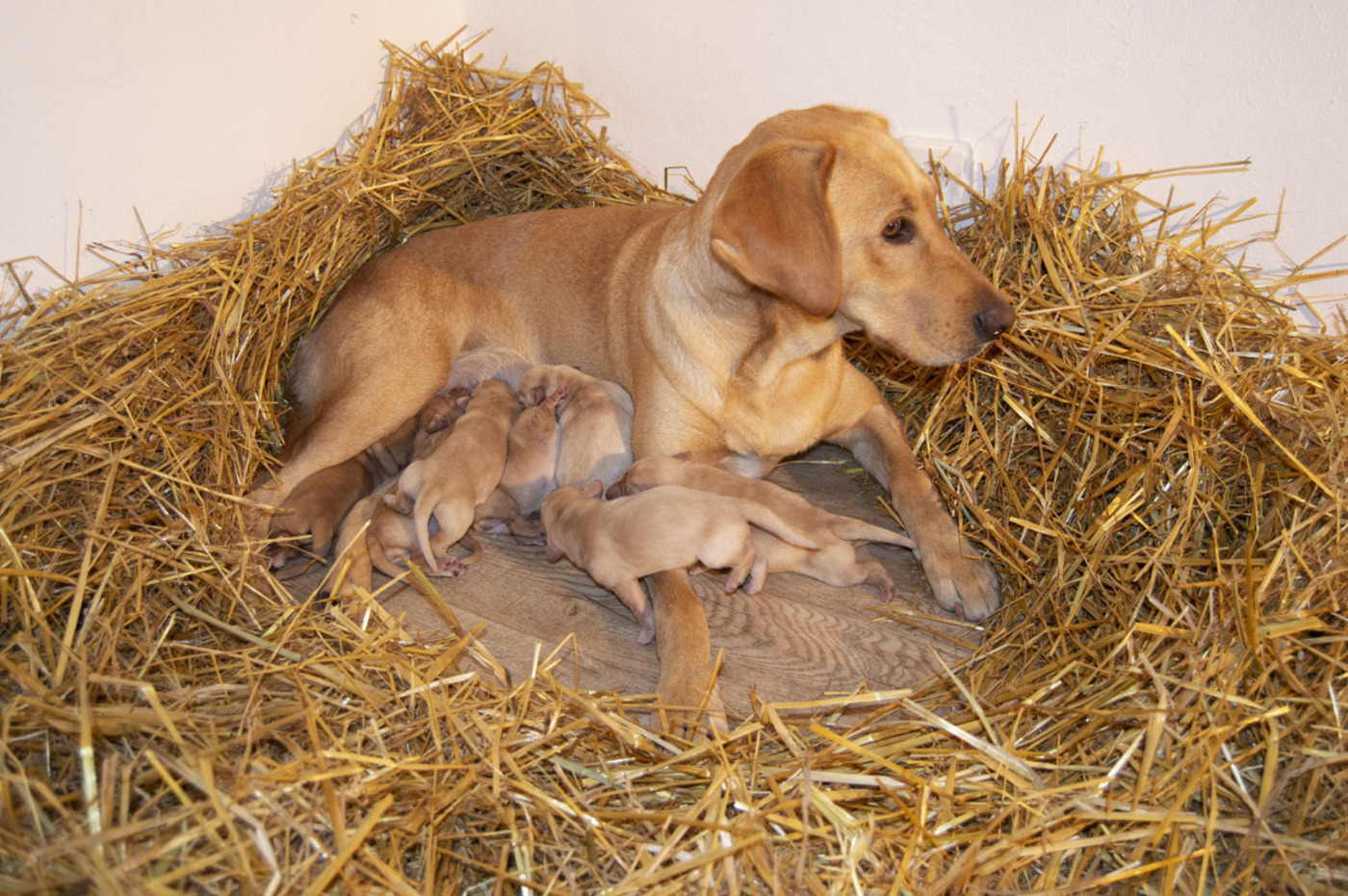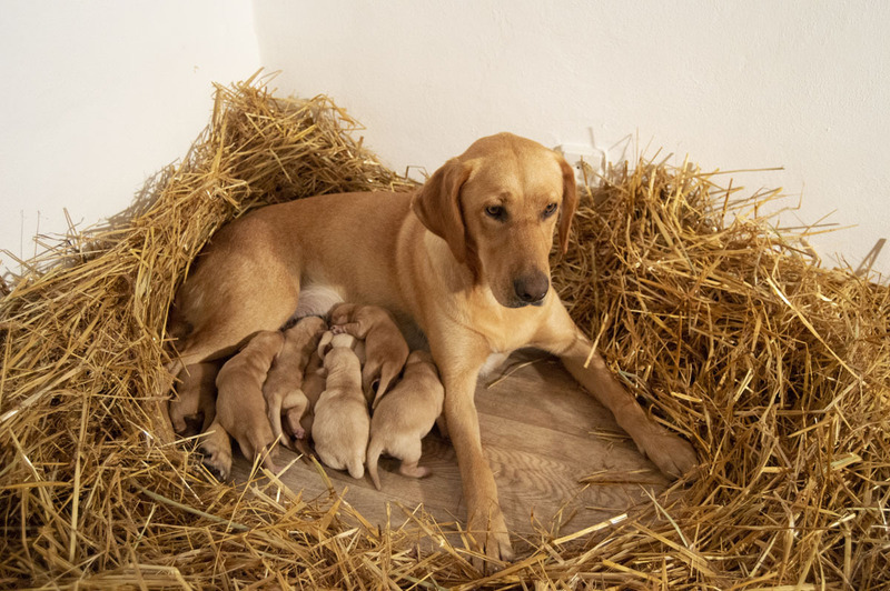 Nechtěla jsem o tom mluvit, dokud to nebude jisté, ale ano, teď už to jisté je, jsem znovu mamka. Stalo se to 18/10/22. Nová rodinka je tady. A je jak přes kopírák jako minule. 8 krásných zlatých, zdravých štěňátek. Jen to trvalo déle než minule, než přišlo na svět poslední, bylo dlouho po půlnoci.